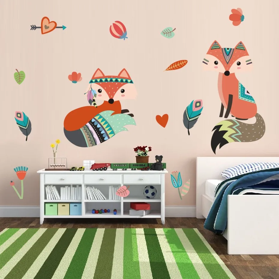 cute Fox Wall sticker Decal Cute Wild Animals Fox Wall Sticker for Kids Room Nursery room Wall Art Vinyl Murals